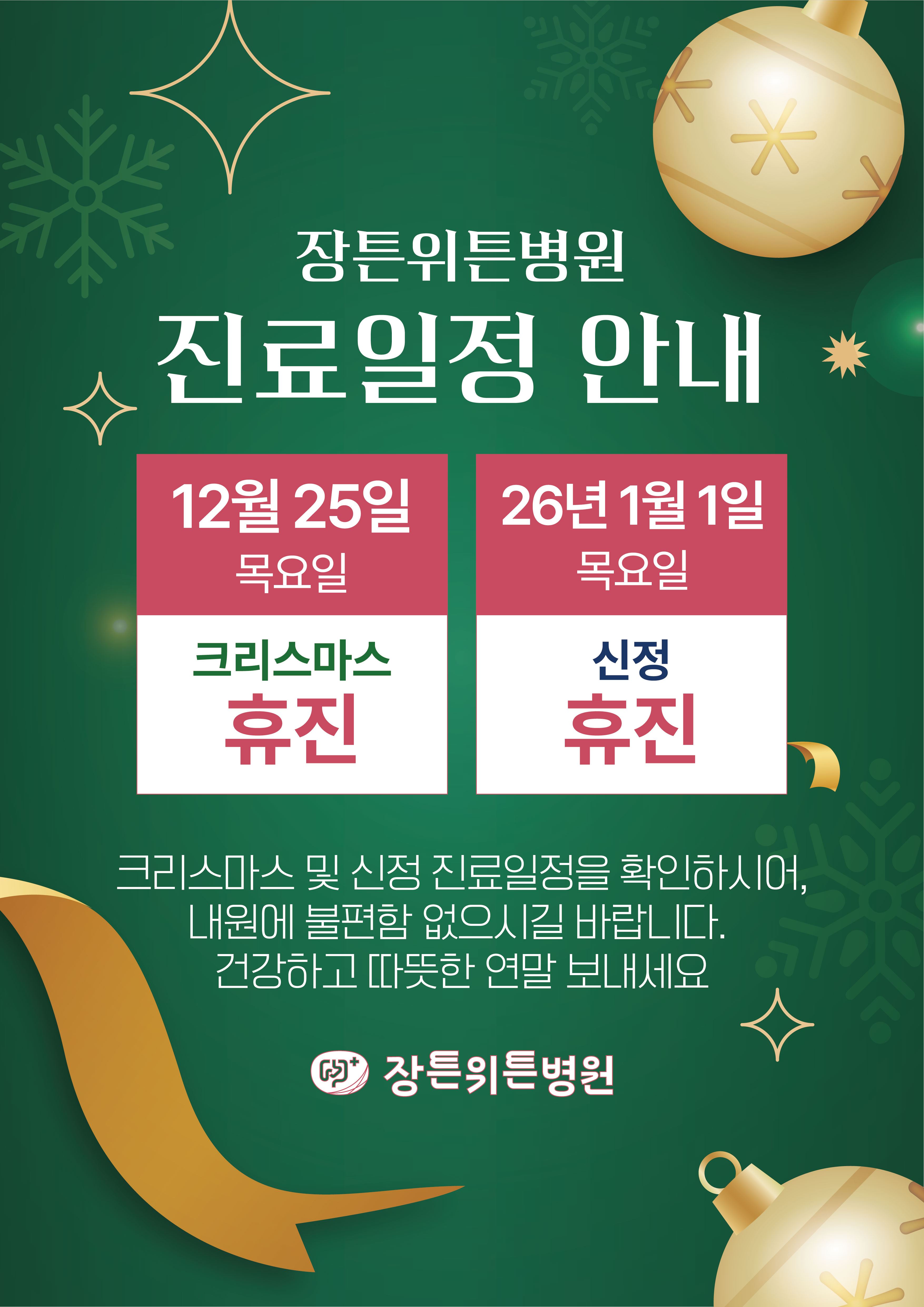 2025 크리스마스, 신정 휴진안내