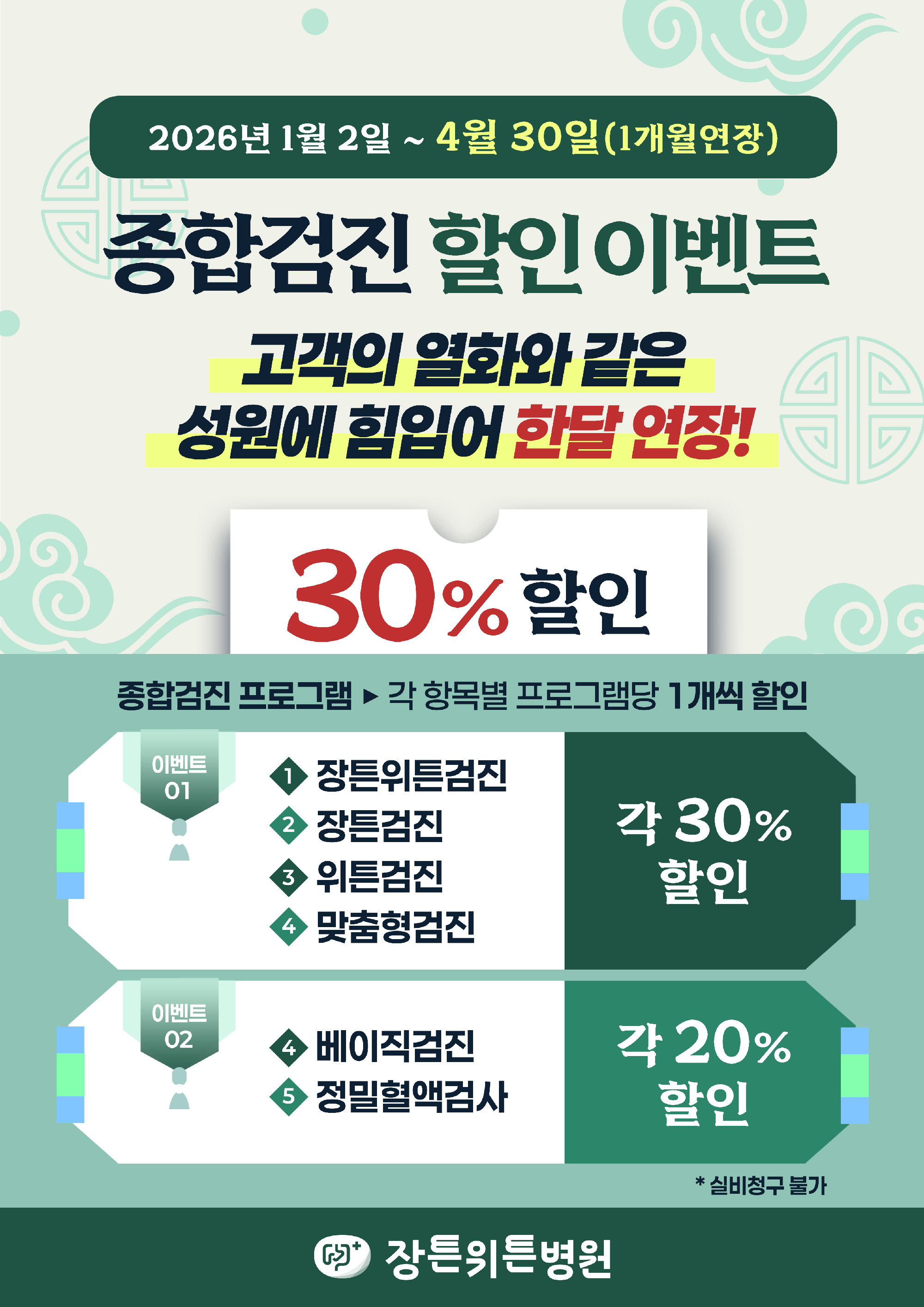 | 종합검진 최대 30% 할인 1개월 더 연장! | ||